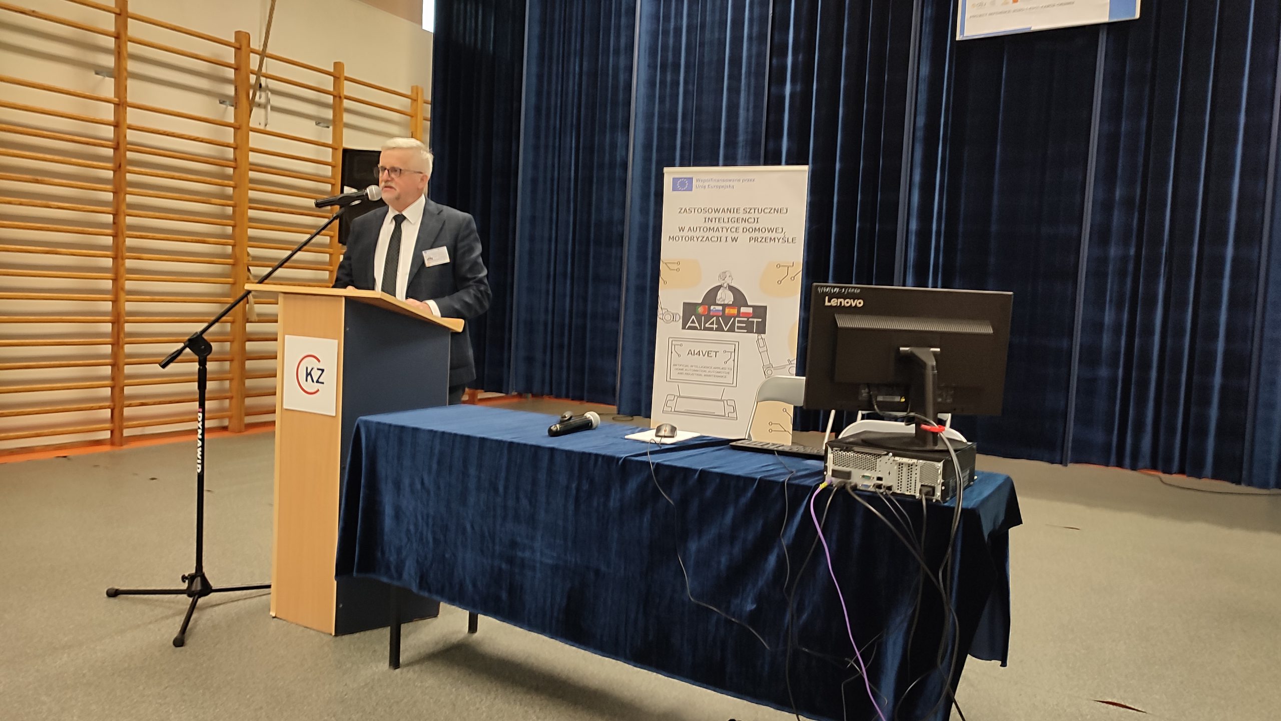 The event was attended by Dr. Eng. Sławomir Romaniuk from the University of Bialystok and Dr. Eng. Fernando Berzosa, coordinator of the AI4VET project. In addition, there was the opportunity to learn first-hand from the CKZ staff involved in the project about the results and demonstrators developed, as well as the work and activities carried out during the project. At the end of the lectures, a workshop was held where some of the developed demonstrators were presented, and the attendees had the opportunity to test and experiment with them, as well as to exchange impressions with students and teachers involved in the AI4VET project.